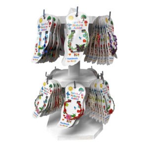 • Materials: Wood (display), seed beads, acrylic, string (merchandise)