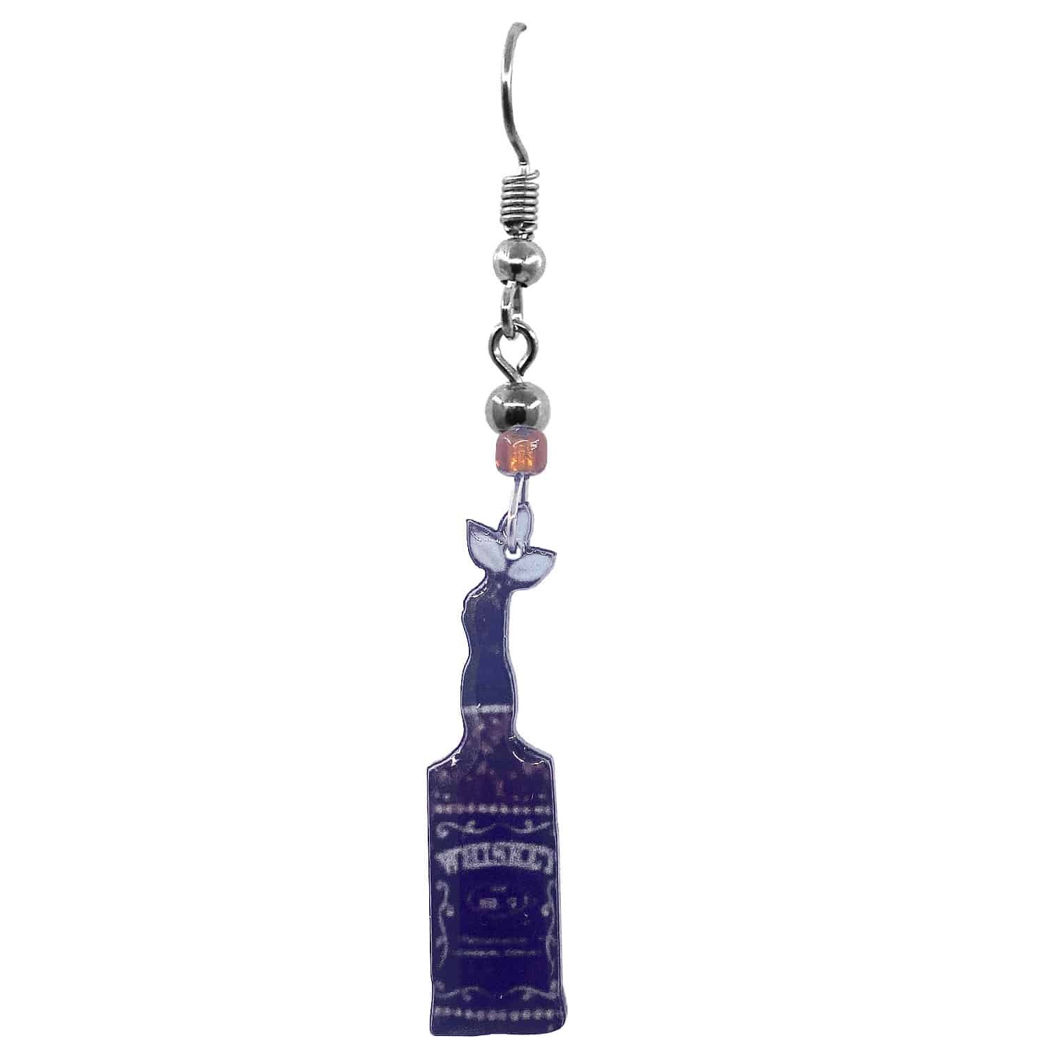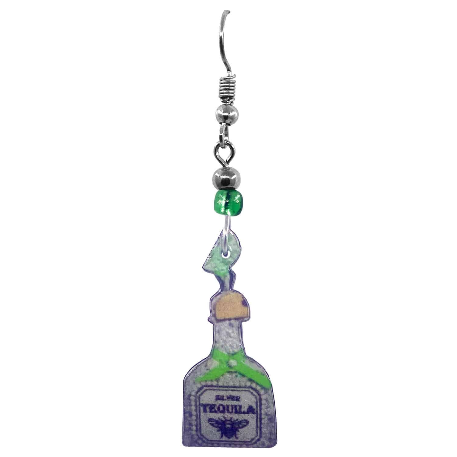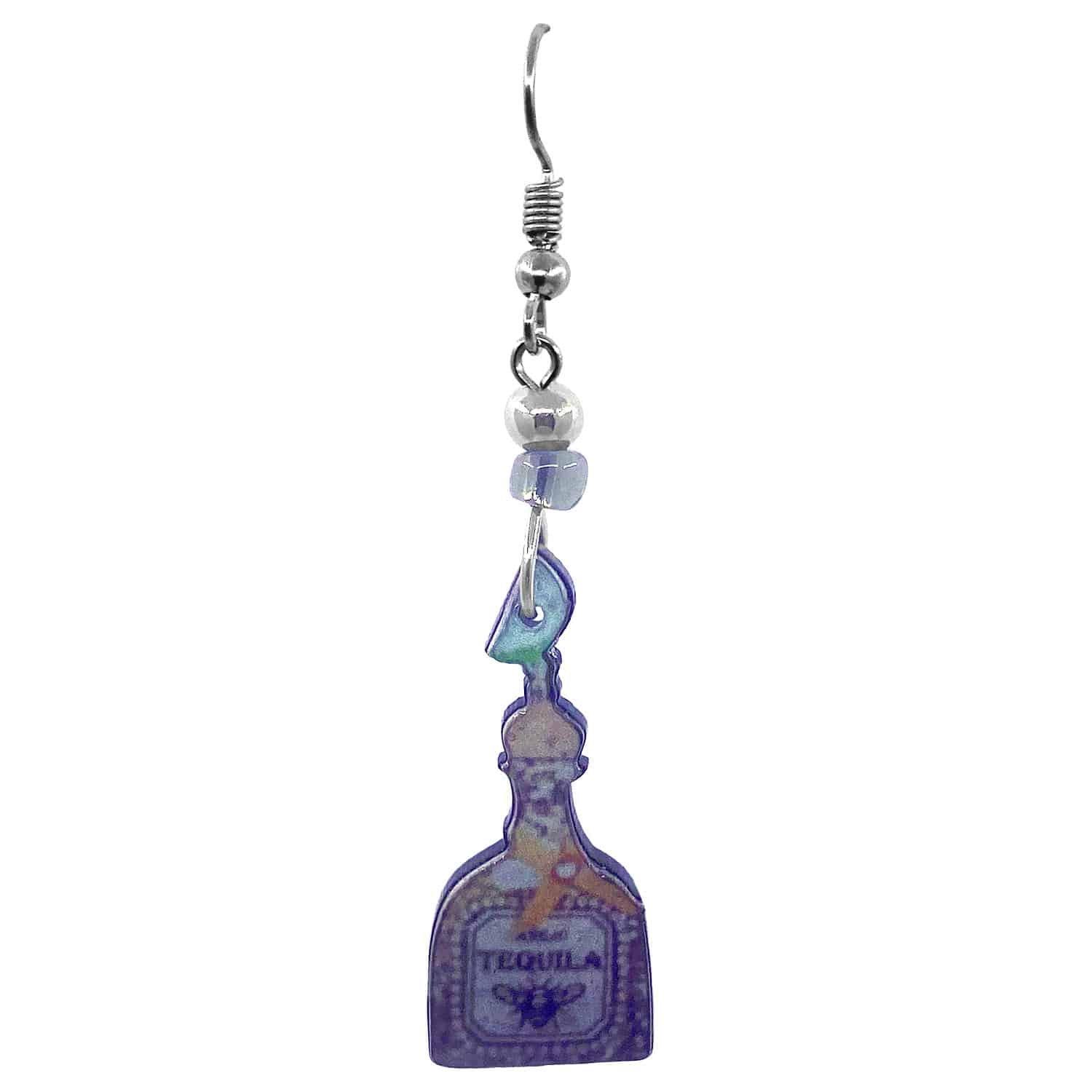Alcoholic beverage shaped acrylic dangle earrings with beaded metal hooks in assorted drink designs. Surgical steel hooks are hypoallergenic and lightweight for a comfortable fit.