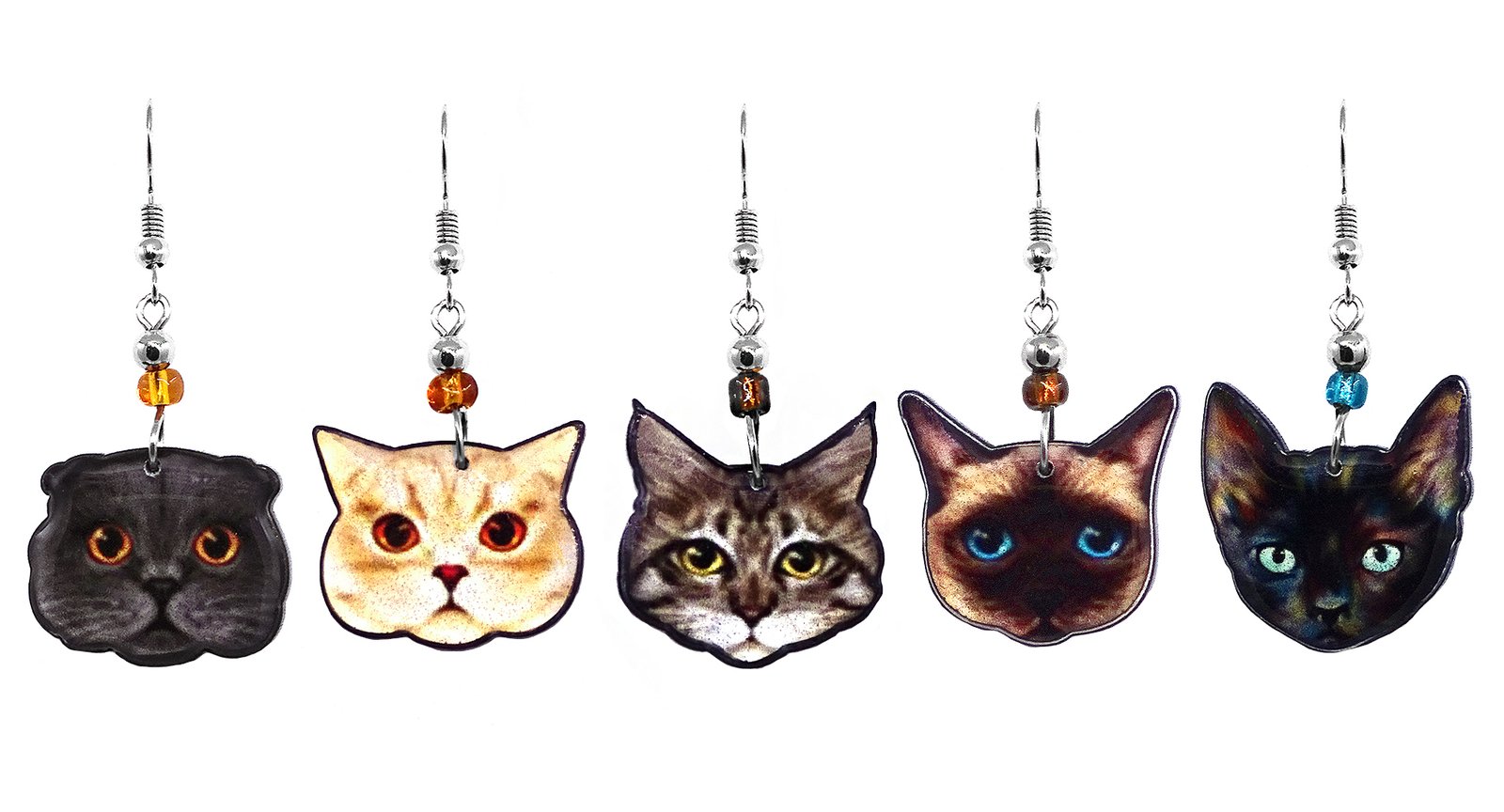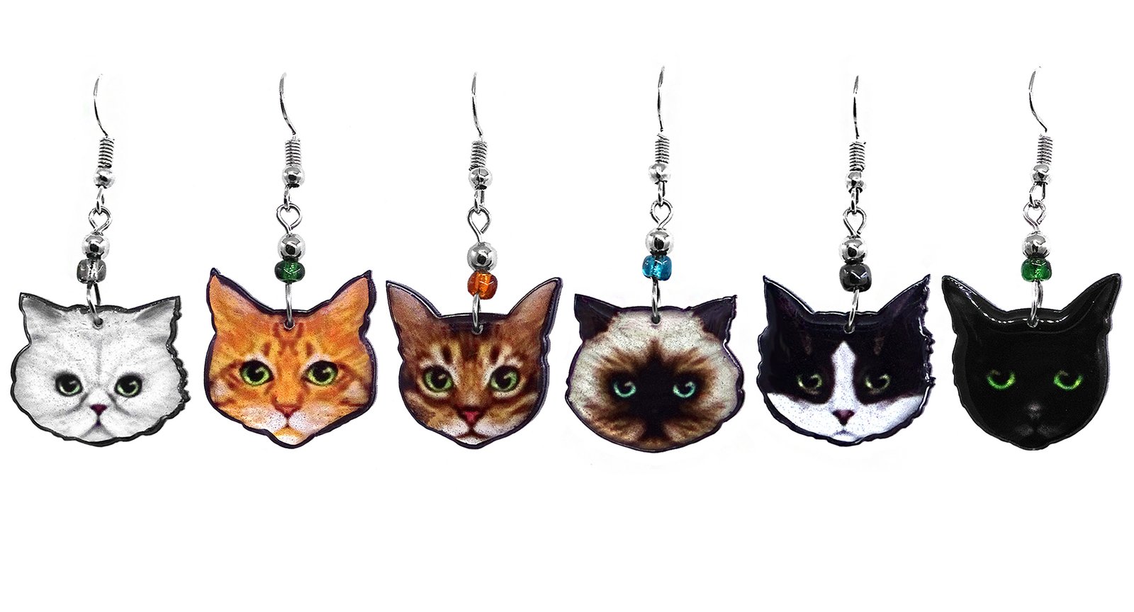 Add a sentimental, eye-catching touch to any accessory collection with these handcrafted acrylic cat face earrings. Featuring cute cat designs with beaded accents, each pair offers a lightweight, playful style that works well for gift shops, boutiques, and novelty displays.