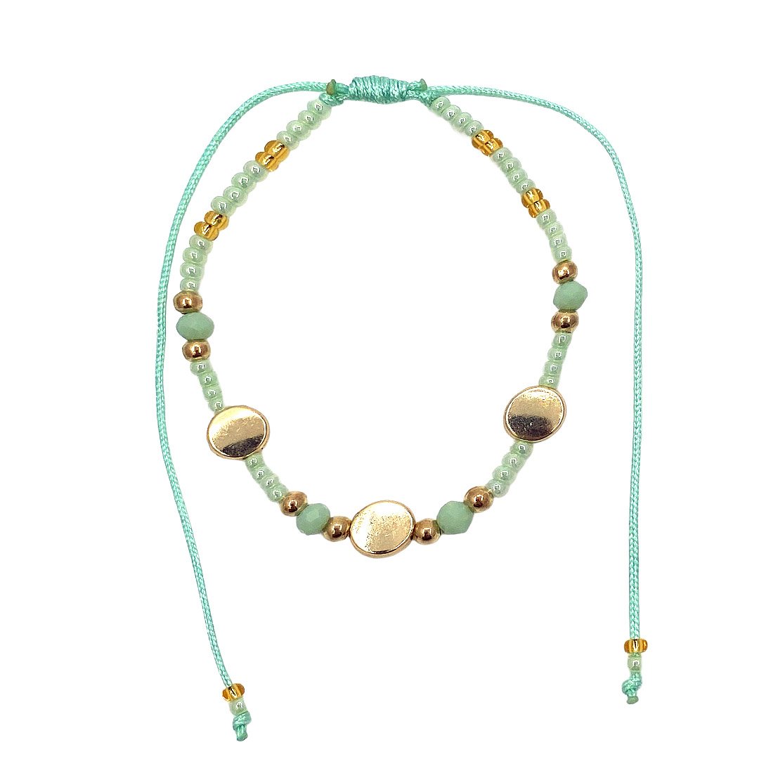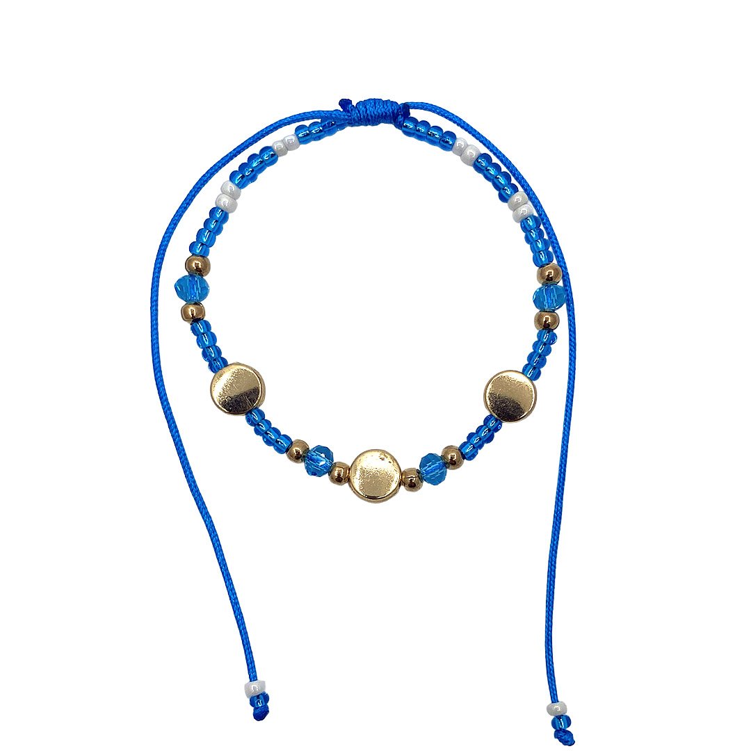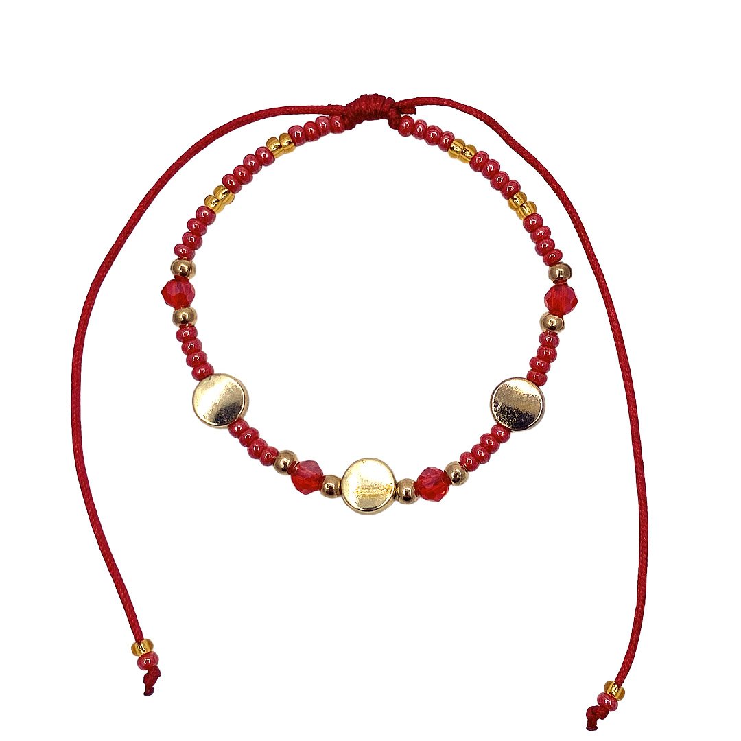 Be the first to review “Gold Circle Charm Beaded Pull Tie Bracelet”