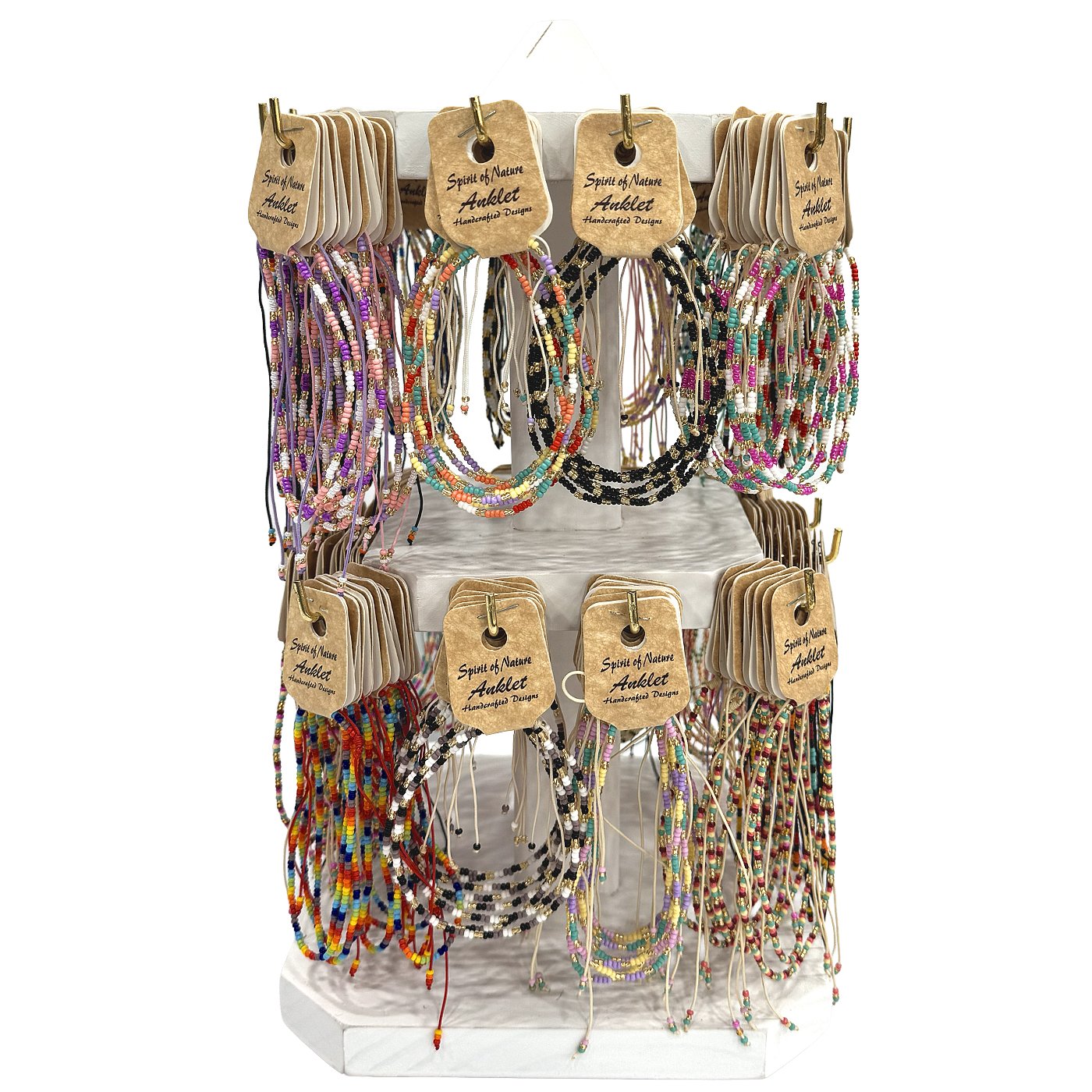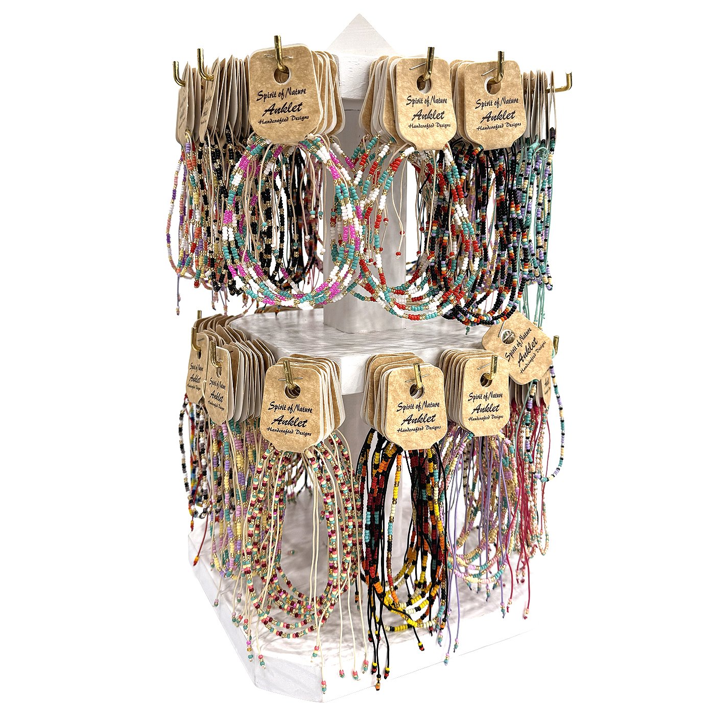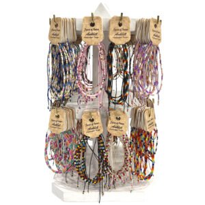Handmade in Colombia, these anklets are lightweight and designed for comfort. The adjustable pull tie closure allows for an easy, one-size-fits-most fit, making them ideal for a wide range of customers and easy retail merchandising.