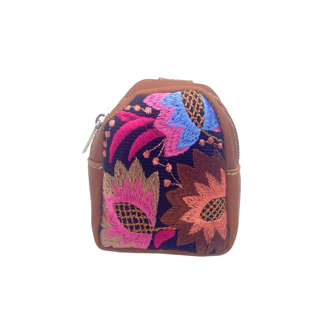 Mini Floral Embroidered Leather Coin Purse