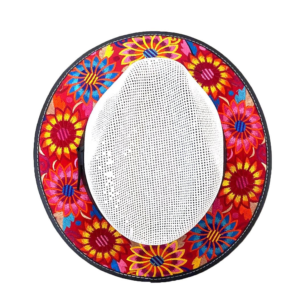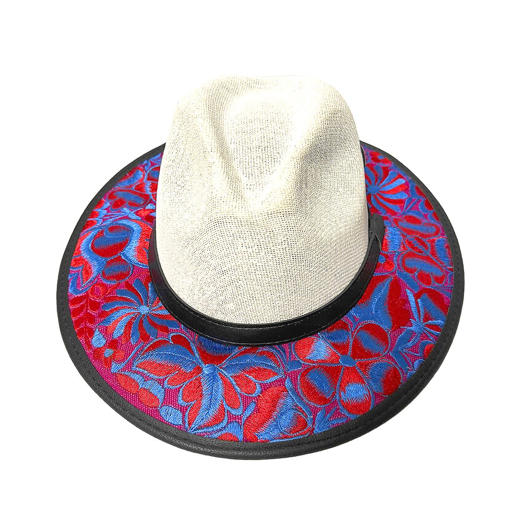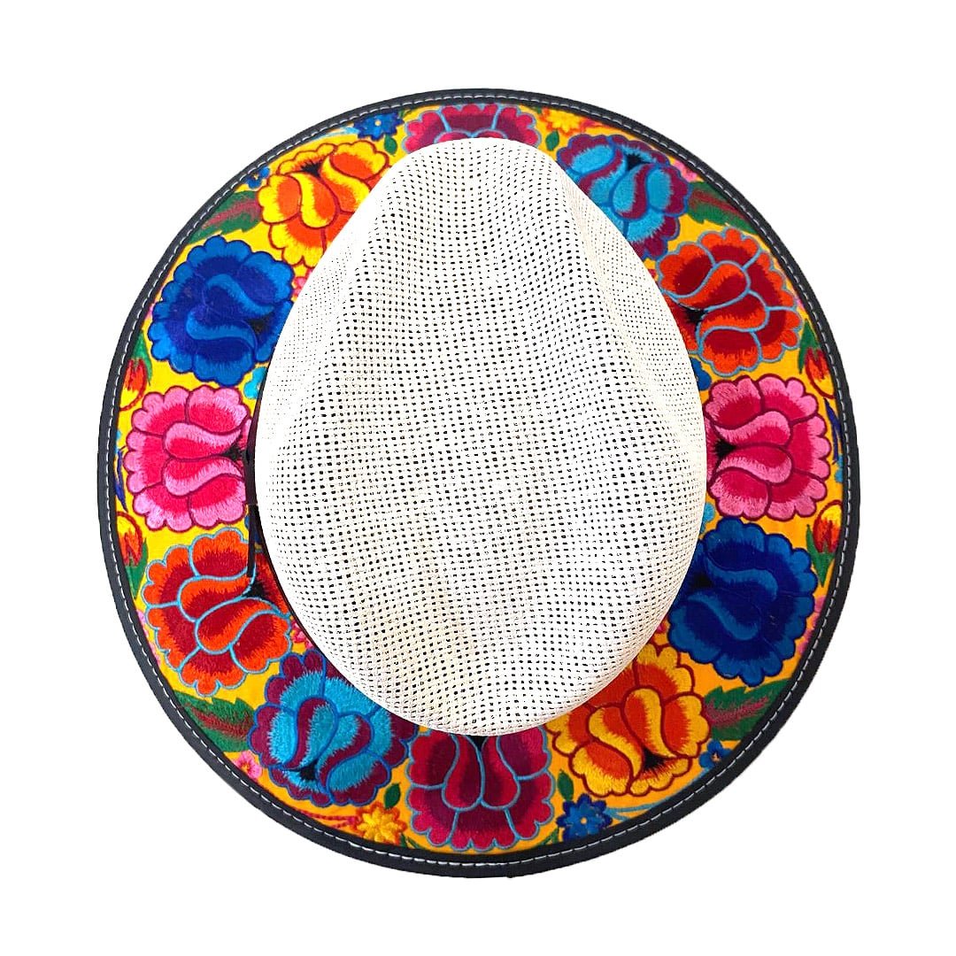 Straw hat for adults with multicolored floral embroidered rim. Standard adult’s one size fits all. Typically worn as a “sun hat” or “sombrero”.