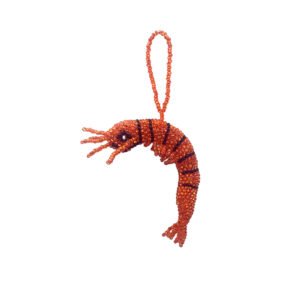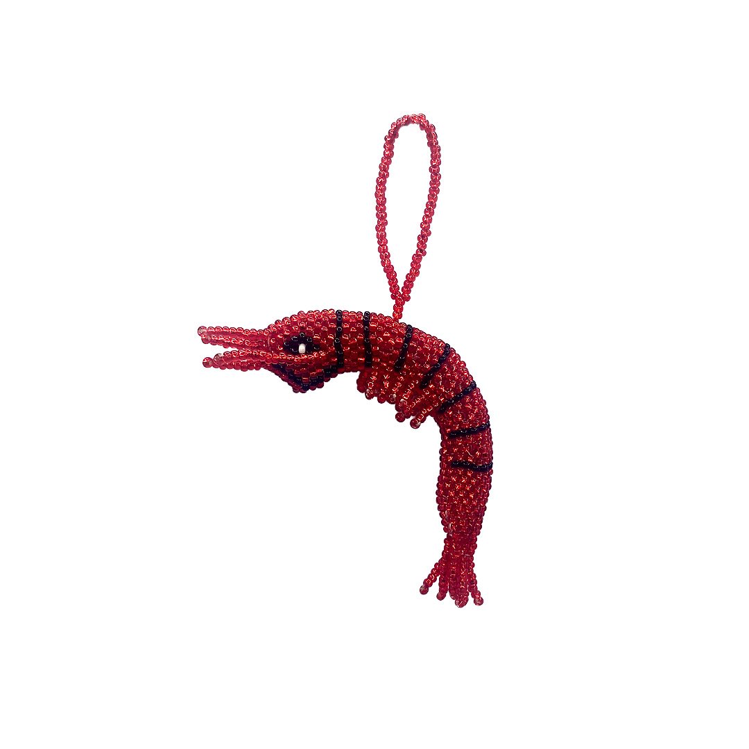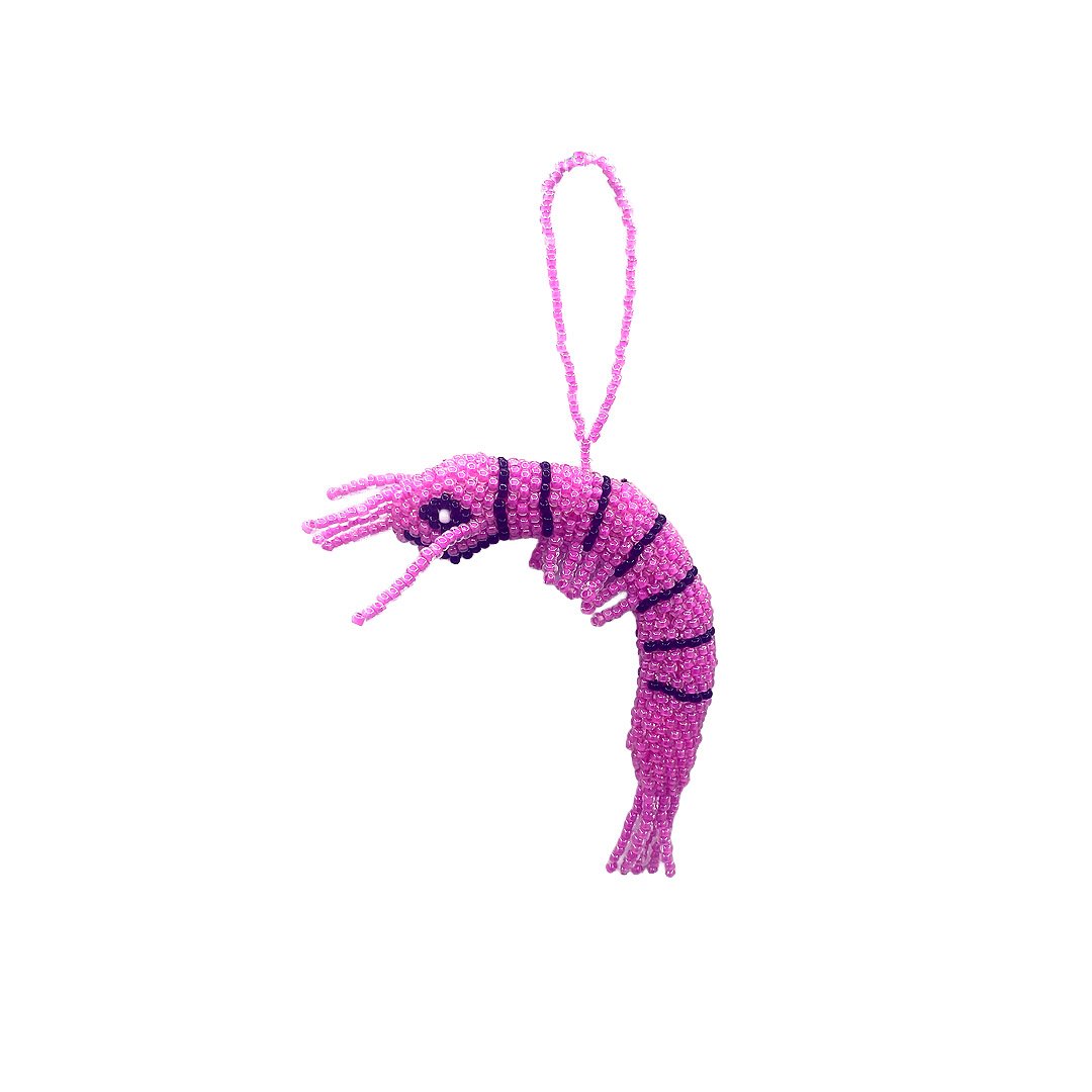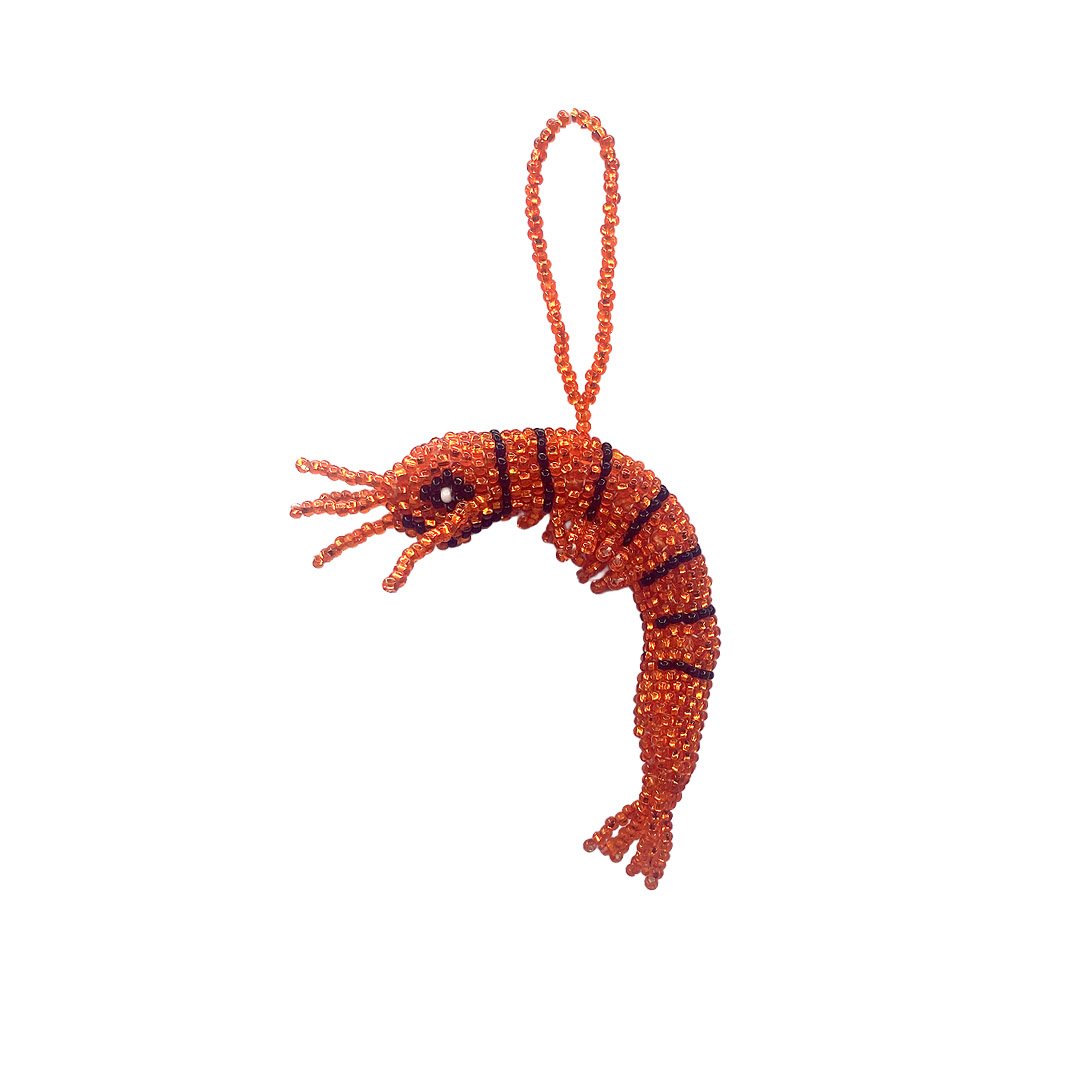 Seed bead animal figurine hanging ornament of a shrimp. With great skill and patience, Guatemalan natives carefully craft each one of these treasures with Czech glass seed beads.